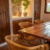 La cocina-comedor, amplia y totalmente equipada. Con una estética rústica refinada, incluye horno, vitrocerámica, nevera de estilo retro, microondas, cafetera, menaje completo y una gran mesa de madera rodeada de sillas cómodas, perfecta para largas sobremesas y conversaciones inolvidables.