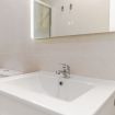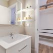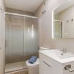 El baño moderno, con un práctico plato de ducha, está diseñado para combinar funcionalidad y estilo, ofreciendo el lugar perfecto para refrescarte después de un día en la playa o explorando los alrededores.