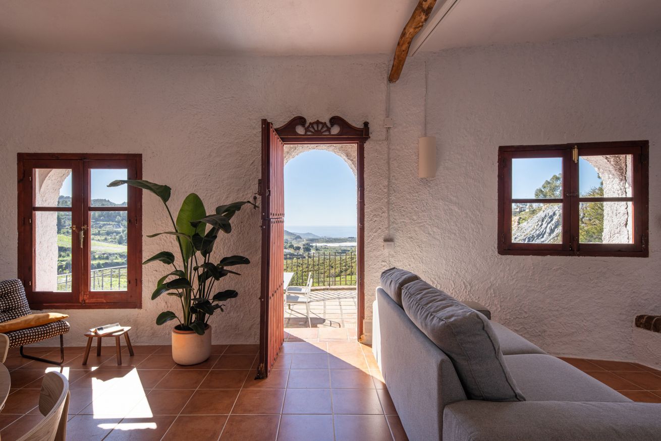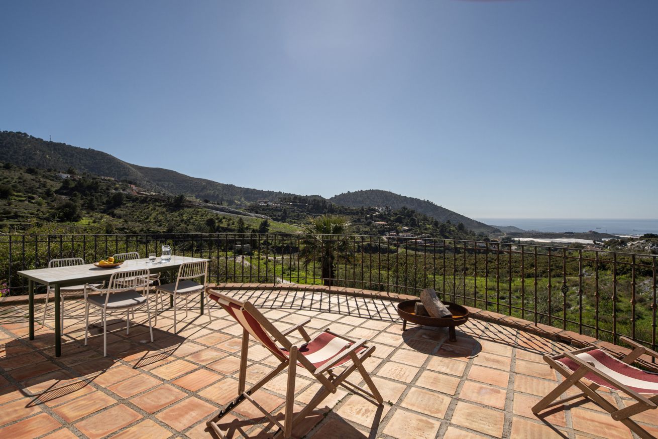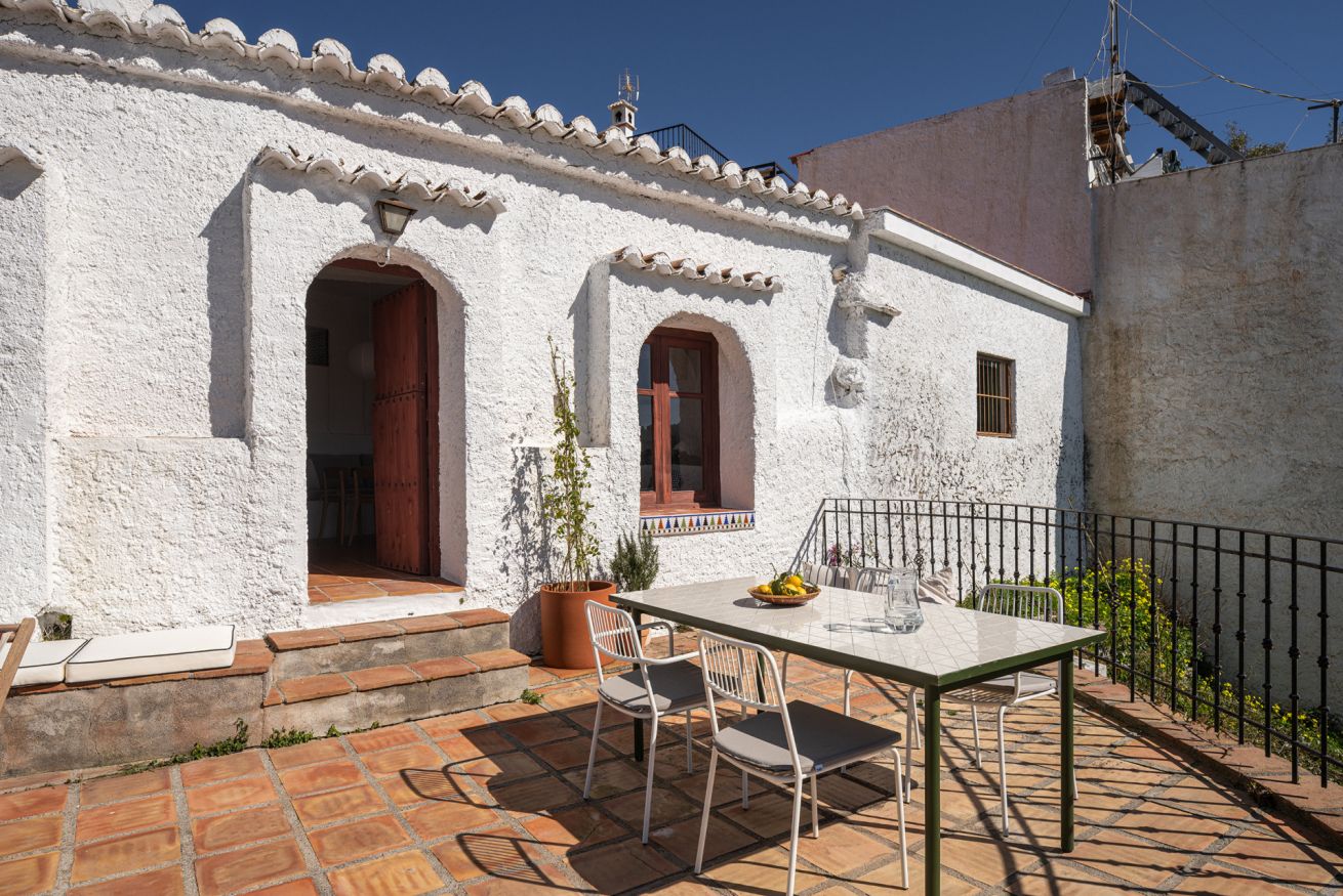 La Parra Roja es una casa de muros gruesos, como las de antes, con una gran terraza y jardín con vistas al mar, ubicada en un pequeño y encantador pueblo andaluz, a pocos minutos de la costa.