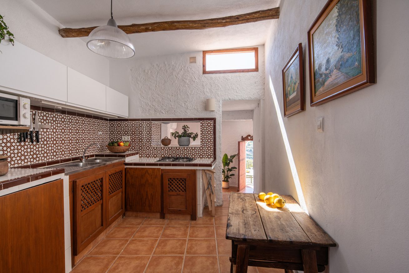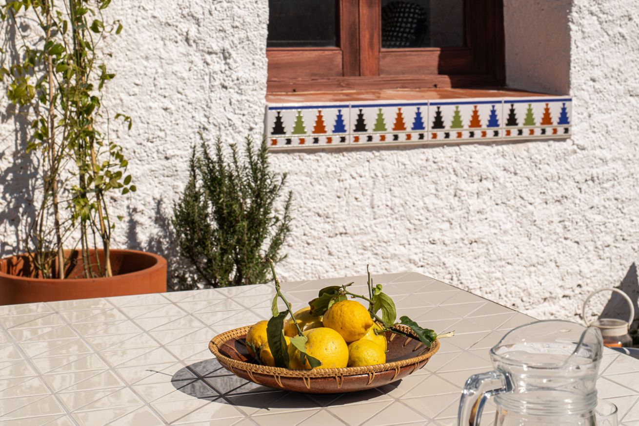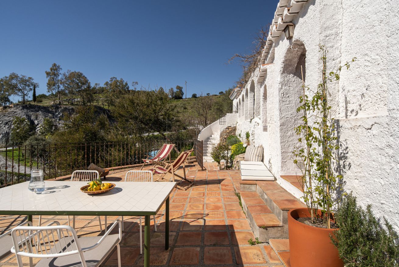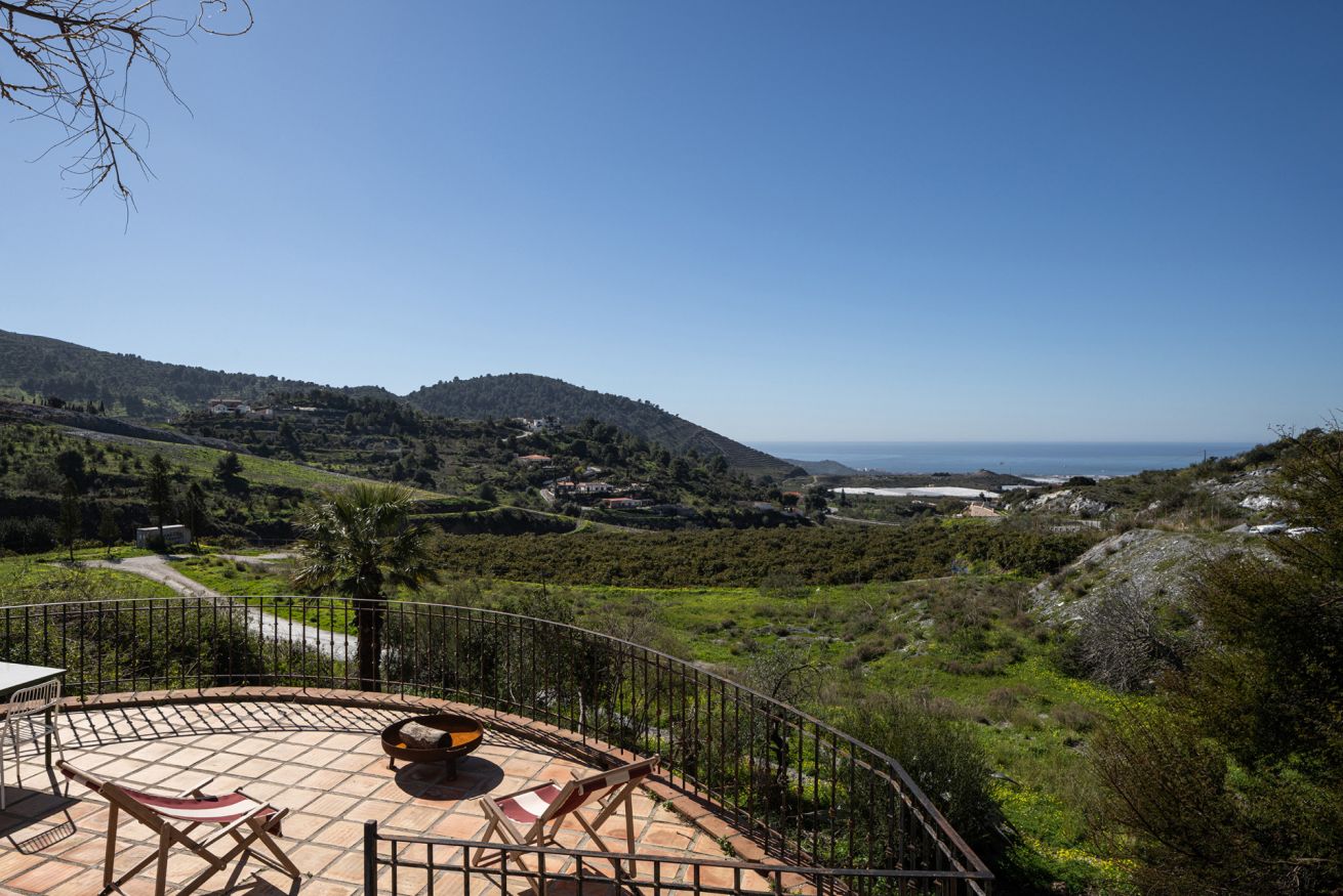 La Parra Roja es una casa de muros gruesos, como las de antes, con una gran terraza y jardín con vistas al mar, ubicada en un pequeño y encantador pueblo andaluz, a pocos minutos de la costa.