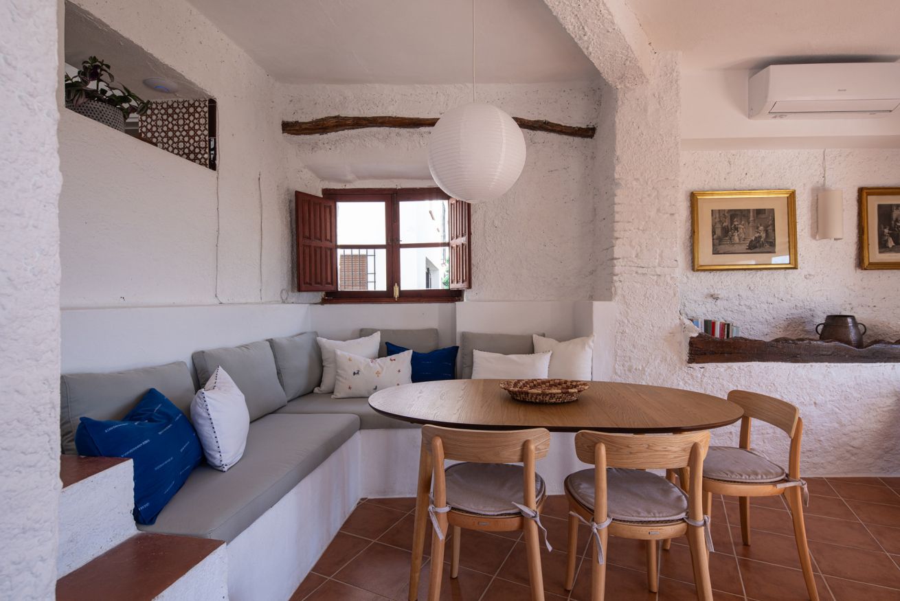 Es un lugar pensado para disfrutarse durante todo el año: cenas al aire libre en verano, desayunos tranquilos con vistas y atardeceres que caen sobre el mar. En invierno, la chimenea, el proyector y sus acogedores espacios interiores invitan a quedarse, desconectar y disfrutar de la casa sin prisas.