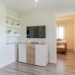 La cocina está totalmente equipada con electrodomésticos y utensilios para preparar todo tipo de comidas. El alojamiento también cuenta con aire acondicionado, WiFi de alta velocidad y lavadora, para brindar una experiencia práctica y confortable.