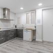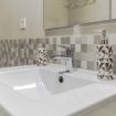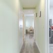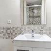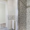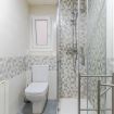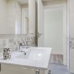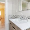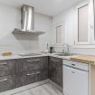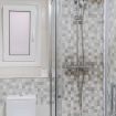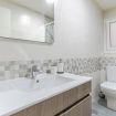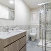 El apartamento ofrece dos baños: uno principal, completamente reformado, con una ducha amplia, mampara de cristal, grifería moderna y toalleros metálicos; y un segundo baño auxiliar, equipado con lavamanos, inodoro, espejo iluminado y accesorios funcionales.