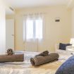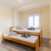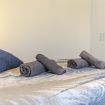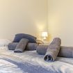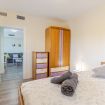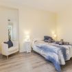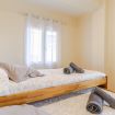 La vivienda cuenta con cuatro habitaciones cuidadosamente equipadas para garantizar el descanso de todos los huéspedes. La habitación principal ofrece una cómoda cama doble, decorada en tonos azules, con mesitas de noche y lámparas que aportan calidez al ambiente. La segunda habitación, también con cama doble, está ambientada en tonos tierra y mantiene un estilo sobrio y funcional. La tercera dispone de dos camas individuales, perfecta para niños o amigos, mientras que la cuarta habitación cuenta con una cama individual con espacio de almacenamiento, ideal para una persona sola o un adolescente.