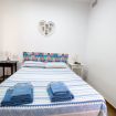 Dispone de dos habitaciones con camas matrimoniales, un baño completo con ducha y una cocina totalmente equipada con nevera, microondas, horno y cafetera de cápsulas Dolce Gusto. En el patio encontrarás una mesita perfecta para tomar el café al aire libre.