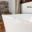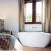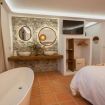 El descanso está garantizado en nuestras habitaciones. La habitación principal ofrece un ambiente íntimo y relajante, decorado con arte local y pensada para la contemplación y el confort. Dispone de una bañera con vista al paisaje integrada en la habitación, baño en suite, televisor, mini-refrigerador, enchufes accesibles y amplio espacio de guardado.