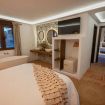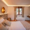 La sala de estar combina el acogedor encanto de una chimenea con un juego de sillones y detalles cuidadosamente seleccionados que invitan al relax, la conversación y el descanso tras una jornada de senderismo por las montañas. Un televisor, una mesa de centro para el té, mantas suaves y una decoración tradicional completan este espacio lleno de alma.