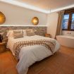 La habitación secundaria cuenta con una cómoda cama doble y otra cama doble de 135cm en el altillo, ideal para familias o pequeños grupos. También dispone de baño privado, televisor, enchufes accesibles, armario con perchas y vistas privilegiadas a la naturaleza.