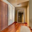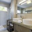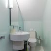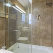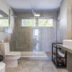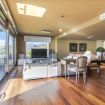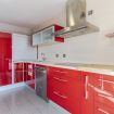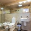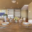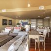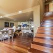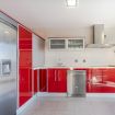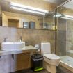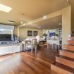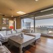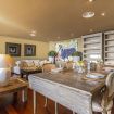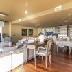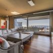 La planta baja alberga un salón de 50 metros cuadrados con un diseño de planta abierta, dividido en dos áreas, y equipado con una chimenea de gas que crea un ambiente acogedor para reuniones y momentos en familia. Las puertas de vidrio de piso a techo inundan el espacio con luz natural y conectan el salón con la terraza, proporcionando una transición perfecta entre los espacios interiores y exteriores. La cocina, completamente equipada con electrodomésticos de última generación, incluye un horno con función de vapor, un frigorífico americano de doble puerta y una estufa eléctrica. Su diseño moderno y funcional convierte el acto de cocinar en una experiencia agradable y práctica para cualquier huésped.