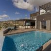 Para aquellos que buscan un toque adicional de entretenimiento, la villa cuenta con una segunda terraza en el nivel inferior. Este espacio cuenta con un bar profesional, un baño, una cómoda área de descanso y un mini campo de golf, perfecto para disfrutar de momentos de diversión y relajación sin salir de la propiedad. La villa se encuentra en una comunidad cerrada y privada con otras diez propiedades, todas completamente independientes, lo que garantiza privacidad absoluta para los huéspedes. A pocos minutos a pie, la Playa de Cabria ofrece una selección de restaurantes andaluces de calidad, ideales para degustar la gastronomía local. Además, el centro de Almuñécar, con su variedad de bares, tiendas y atracciones, está a solo diez minutos en coche. A quince minutos se encuentra uno de los campos de golf más prestigiosos de la región, y en apenas una hora podrás visitar Granada y la majestuosa Alhambra.